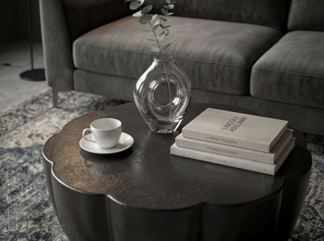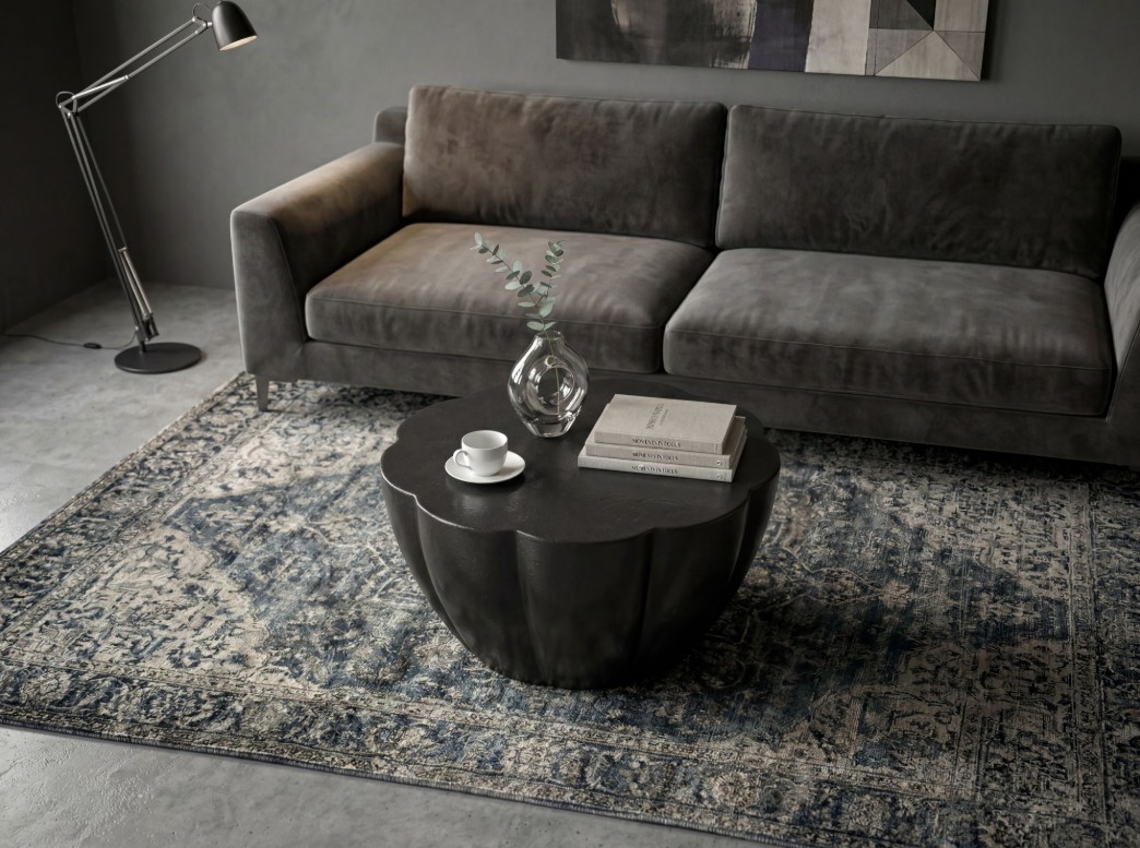 Moderne ronde bijzettafel in bloemvorm in de kleur zwart.