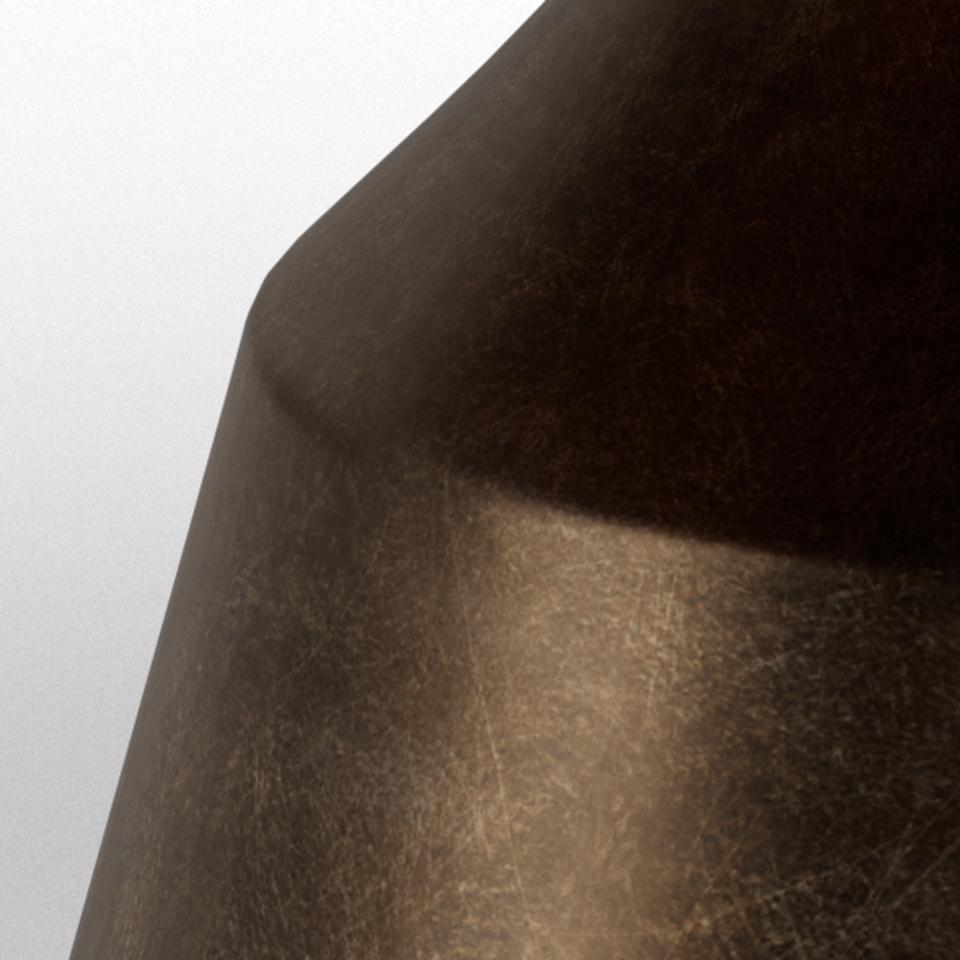 Ronde metalen salontafel met brons kleurig onderstel gecombineerd met bruin getint veiligheidsglas.