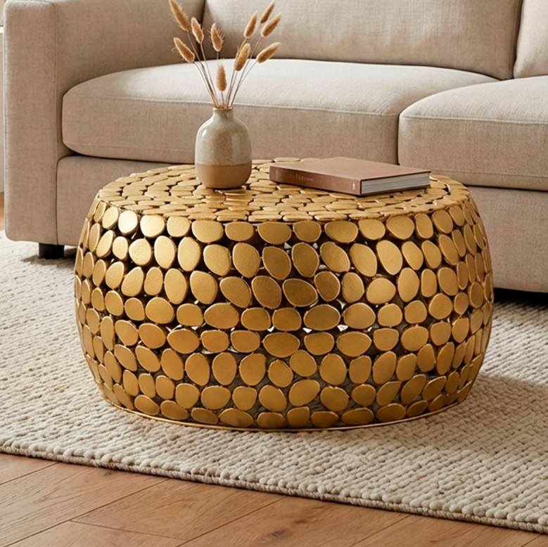 • Deze salontafel goudkleurig staat niet opgesteld in onze showruimte