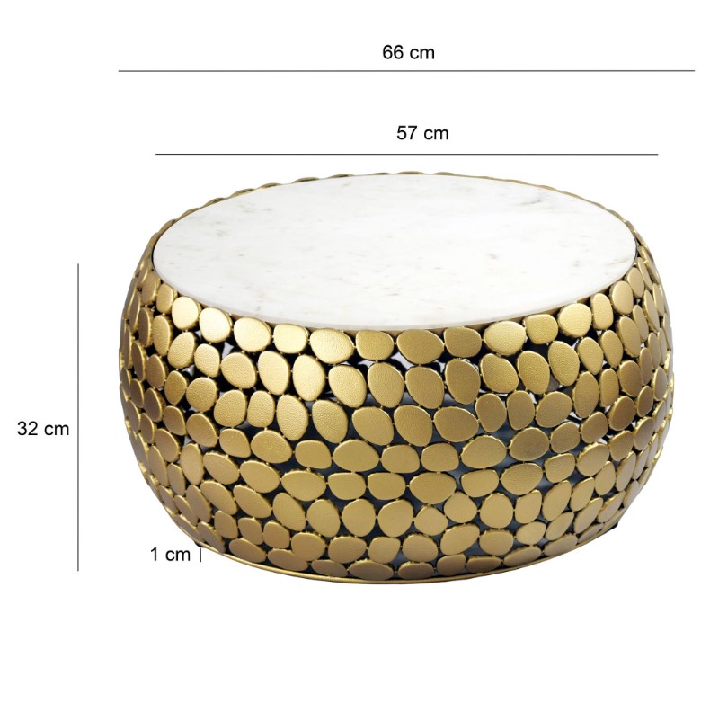 Salontafel goudkleurig metaal wit marmer 66cm