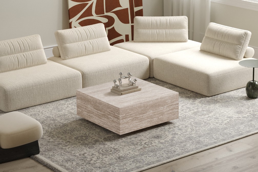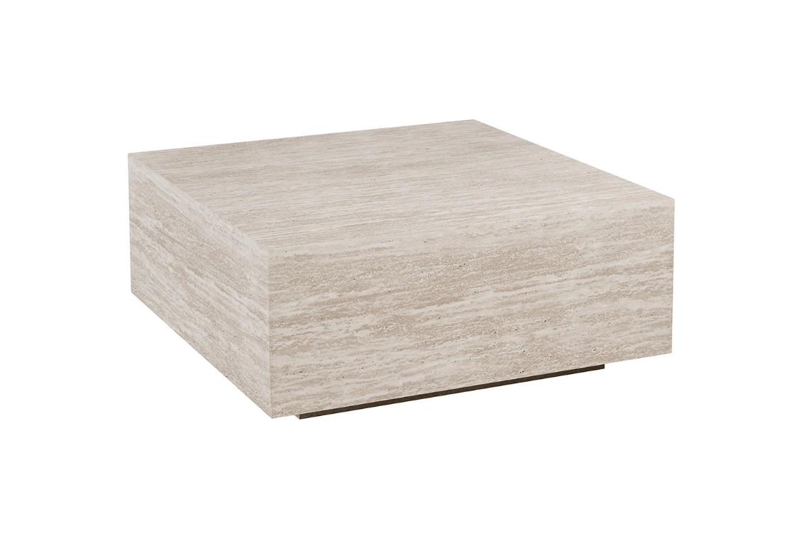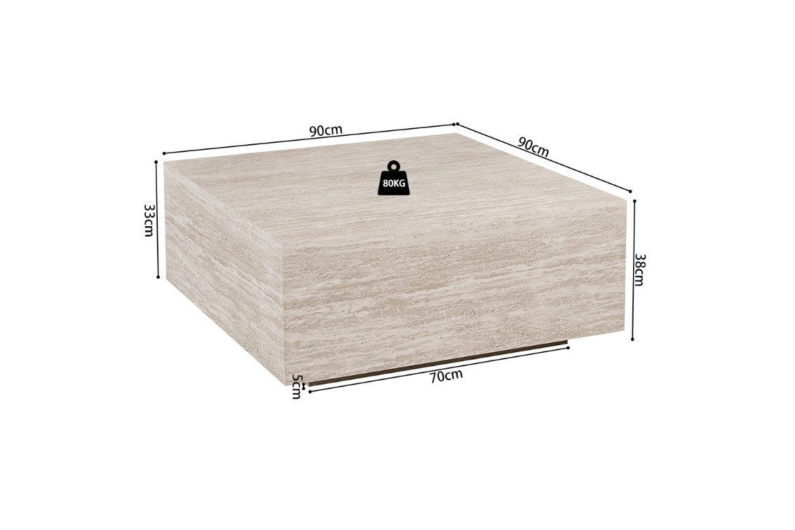 Moderne vierkante salontafel met zwevende look in de kleur travertin.