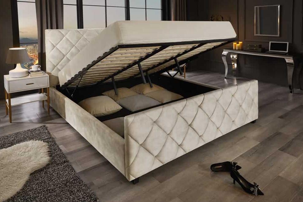 Hou je van een sfeervolle slaapkamer en wil je je slaapkamer een elegante flair geven? Dan is dit mooie bed met fluwelen bekleding een absolute aanrader voor je slaapkamer. Zowel het hoofdeinde als het voeteneinde hebben een bijzondere exclusieve uitstraling door het mooie stikpatroon in de stof.