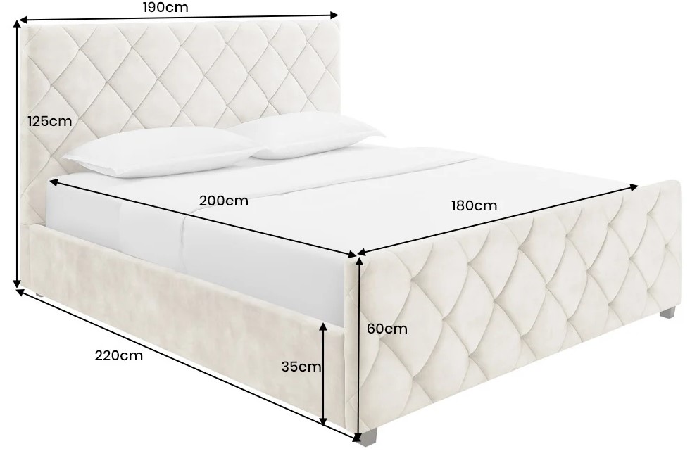 Dit bed maakt indruk met zijn elegante ontwerp en maximale comfort. De luxueuze champagnefluweel bekleding geeft het bed een stijlvolle en moderne uitstraling, terwijl het zacht gevoerde hoofdeinde met decoratieve stiksels een elegante touche toevoegt. Het ruime ligoppervlak van 180x200 cm biedt volop ruimte voor een rustige slaap.