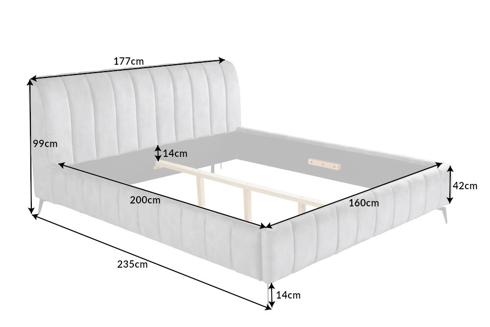• Inlegdiepte voor matrassen 14 cm
