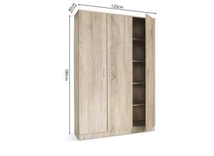 Een functionele opbergkast voor in de slaapkamer of andere willekeurige bergruimte. De kast is voorzien van drie draaideuren en acht legplanken. Deze kleding kast is leverbaar in de afmeting breedte x diepte x hoogte: 120 x 40 x 180 cm Kleur: eiken sonoma Materialen: Hoogwaardige meubelplaat met eiken decor afwerking
