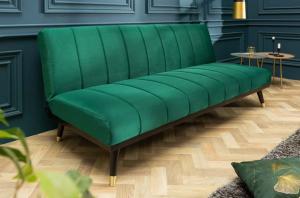 Deze fluwelen bank voegt elegantie en flair toe aan je woonkamer! U moet zich bijzonder op uw gemak voelen in de woonkamer, want hier brengt u een groot deel van uw tijd thuis door. Een comfortabele bank is hier het middelpunt en zal snel een onbetwiste favoriet worden. Deze grote slaapbank nodigt uit tot ontspannen en straalt dankzij de elegante fluwelen bekleding in donkergroen in combinatie met de gouden poten een elegante retro-flair uit die tegelijkertijd bijzonder comfortabel is. Zitbank en slaapgelegenheid in éÃ...