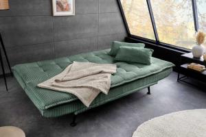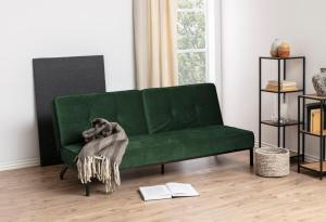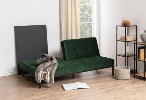 Moderne slaapbank met eenvoudig uitklapsysteem! Omarm een ruimtebesparend ontwerp met praktische zitbank en slaapbank functie. Deze groene opklapbare 2-zits bank heeft een chique zachte fluwelen bekleding. Uitgerust met apart verstelbare rugleuningen en een eenvoudig klik-klak-mechanisme om de rugleuning in 3 verschillende standen te verstellen. De totale afmetingen van de fauteuil zijn b x d x h: 198 x 95 x 87 cm Kleur: Bekleding groen Materialen: bekleding van stof fluweel