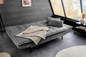 Ervaar stijl en comfort: flexibele slaapbank met eenvoudige en praktische uitklapfunctie. Bekleed met een grijze corduroy stof en horizontale stiksels, is deze slaapbank een praktische en elegante oplossing voor een multifunctionele ruimte en logeerkamer. Mocht u moe worden of overnachtende gasten ontvangen, dan kan deze bedbank dankzij een eenvoudig systeem gemakkelijk worden omgetoverd tot een bed. Afmetingen BxDxH: 190 x 81,5 x 82,5 cm Kleurcombinatie :  Bekleding donkergrijs Poten zwart Materialen: Bekleding: st...