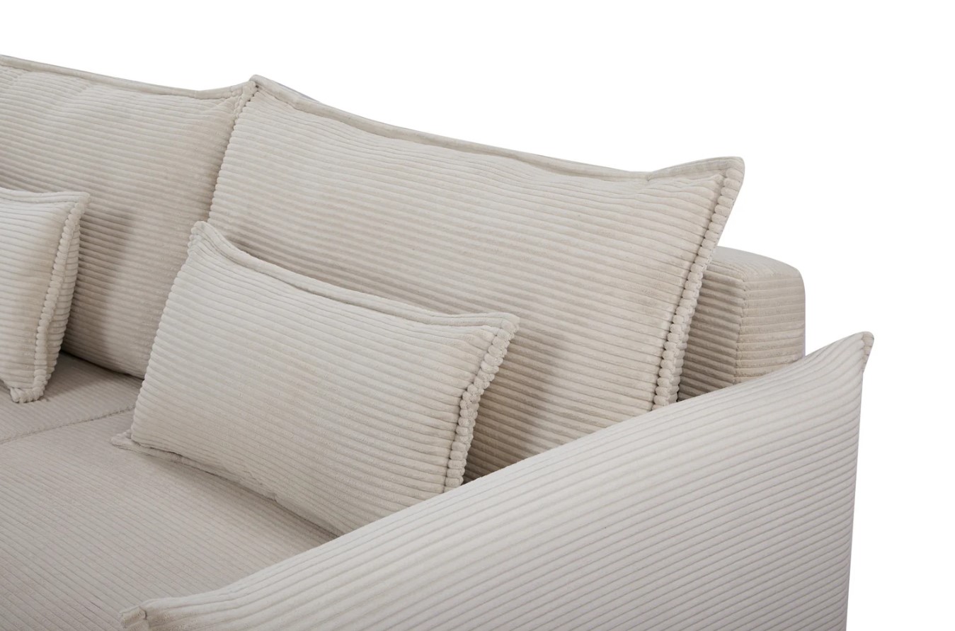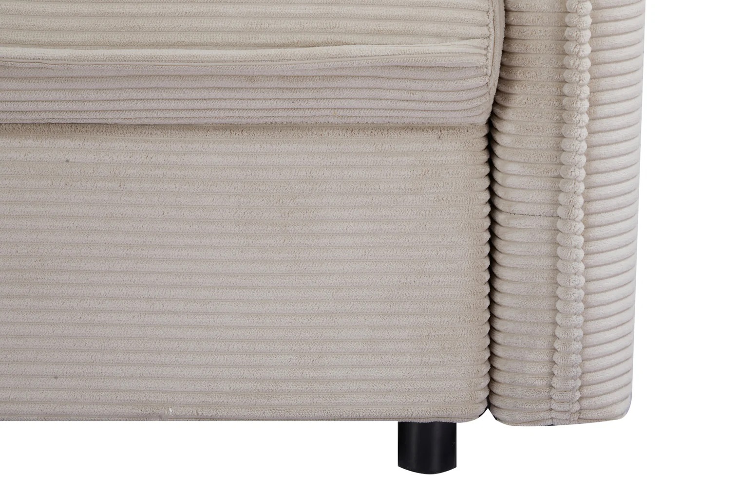 Een mooi praktisch bankstel met slaapfunctie in modern landelijke woonstijl met stabiel uitschuifbaar bed functie systeem. De bank is compleet rondom voorzien van zachte cord stoffen bekleding en is hierdoor ook in een vrije ruimte te plaatsen. Uitgeklapt is de breedte van de bank 150 cm. De rugleuning is verstelbaar en zorgt voor extra comfort. De zitting is voorzien van een comfortabele S-vering. De bank wordt geleverd inclusief 2 extra kleine kussens van 65x35 cm.