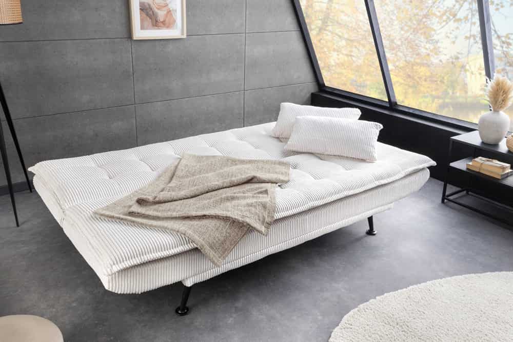 Minimalistisch, tijdloos en doordacht: met de neerklapbare rugleuning van de slaapbank heeft deze bank een royale ligruimte voor de slaapgasten. De combinatie van de subtiele metalen pootjes en de mooie brede cord stof krijgt de bank een stijlvolle uitstraling. Kortom een slaapbank die bij past bij vele inrichtingsstijlen!