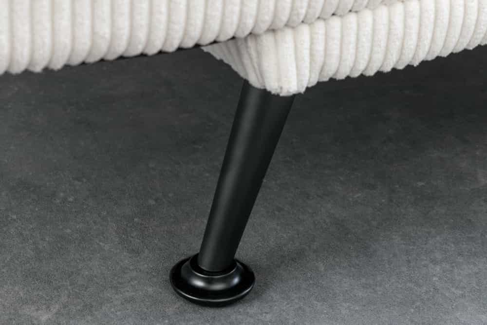 Een modern praktisch 3-zits bankstel met slaapfunctie. De bank heeft een stevige bekleding van cord stof gecombineerd met zwarte metalen pootjes.