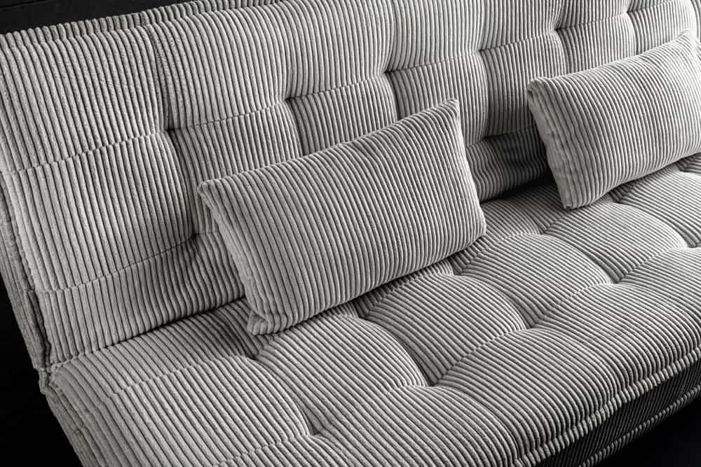 slaapbank beigegrijs cord stof 195 cm met kussens
