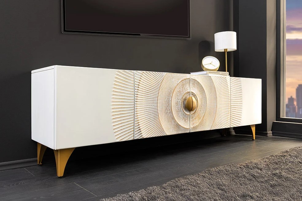 Golden Glamour – Exclusief massief houten tv-meubel in wit en goud!