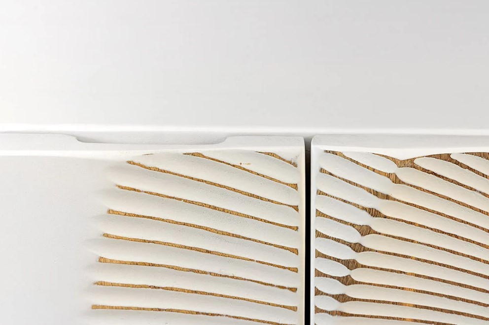 • Deuren wit met 3D houtfrezingen met gouden uitstraling