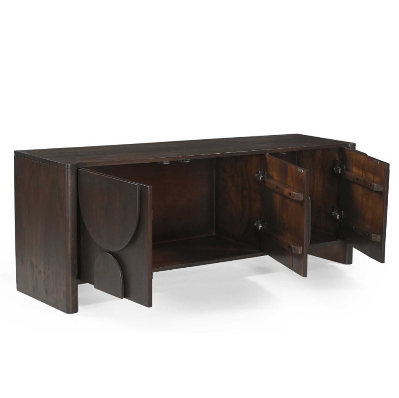 Modern TV-meubel met organische vormen in de deuren. Deze organische vormen geven het meubel een eigentijdse en karaktervolle uitstraling. Een leuke eyecatcher kast geschikt voor diverse woonruimtes zoals woonkamer of werkruimte. Combineer deze kast met de andere meubelen in deze woonstijl.