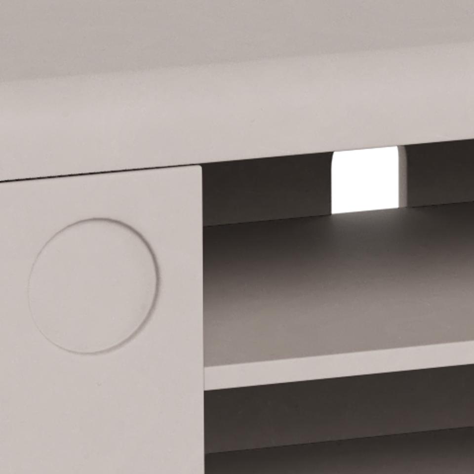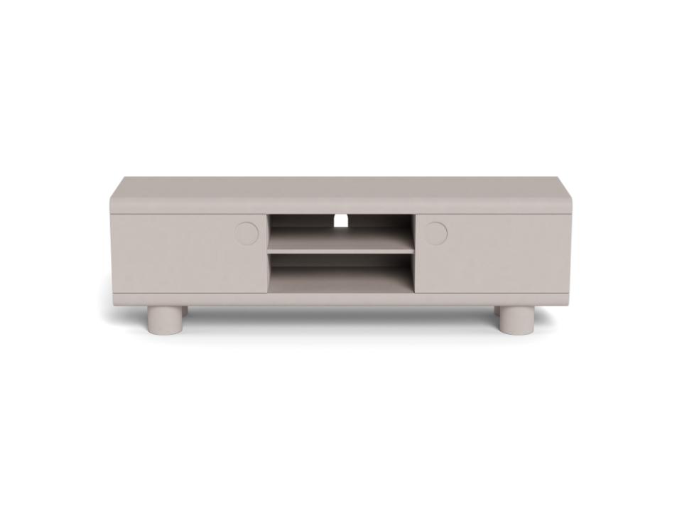 Modern vormgegeven tv meubel van MDF in de kleur grijs. Het meubel is voorzien van twee deuren en open audio ruimte met kabeldoorvoer.  Combineer dit meubel evt. met de bijbehorende meubelen uit dit woonprogramma.