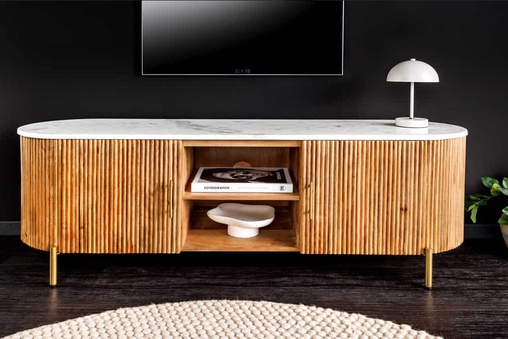 tv meubel mangohout met marmer bovenblad 140 cm