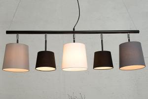 Deze hanglamp is een geweldige blikvanger boven uw eettafel! Ben je nog op zoek naar een lamp die je eettafel laat stralen of uw inrichting de finishing touch geeft? Dan moet je zeker eens kijken naar deze moderne hanglamp! De vijf lampenkappen van hoogwaardig linnen hebben verschillende kleuren en vullen elkaar allemaal prachtig aan en geven de lamp hierdoor een sfeervolle en huiselijke uitstraling. Afmetingen: Breedte: 100 cm Diepte: 19 cm Hoogte: 30 cm Overige afmetingen bxdxh: 2x lampenkap 15 x 15 x 13 cm ...