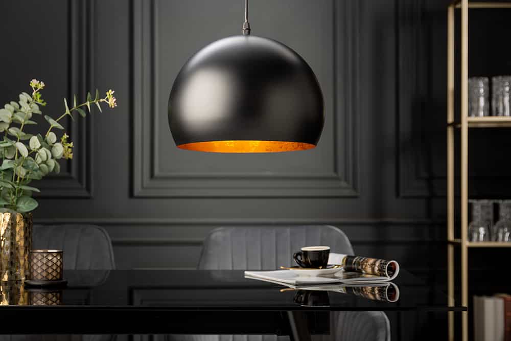 Deze Hanglamp zwart goud is een mooie sfeervolle bolvormige hanglamp met een doorsnede van ca 30 cm in de kleur zwart met aan binnenzijde goud.