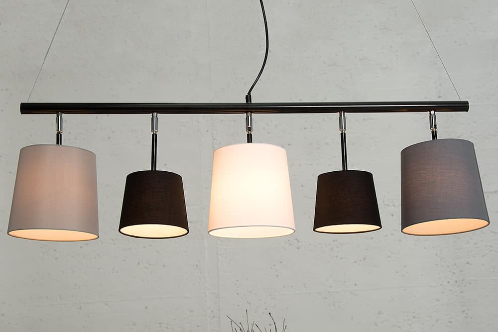 Ben je nog op zoek naar een lamp die je eettafel laat stralen of uw inrichting de finishing touch geeft? Dan moet je zeker eens kijken naar deze moderne hanglamp! De vijf lampenkappen van hoogwaardig linnen hebben verschillende kleuren en vullen elkaar allemaal prachtig aan en geven de lamp hierdoor een sfeervolle en huiselijke uitstraling.