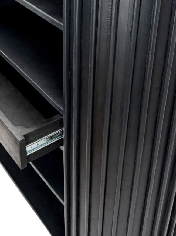 wandkast zwart mangohout lamellen design 105x122 cm