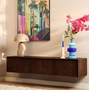 - Ruimtelijk effect: Door het meubel aan de wand te bevestigen blijft de vloer vrij, wat je kamer optisch groter doet lijken.