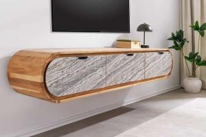 Gemonteerd hangend TV dressoir voorzien van drie deuren. De deurfronten zijn fraai voorzien van natuursteenlook. Een echte blikvanger in zowel privé als zakelijke omgevingen! Het meubel wordt d.m.v. ophangbeugels aan de muur bevestigd. Eyecatcher in iedere woonomgeving! Dit hangende tv-meubel is verkrijgbaar in de afmeting lxdxh: 160 x 33 x 29 cm Overige informatie: kastombouw van acaciahout gelakt deuren met krasbestendige natuursteenlook afwerking deure...