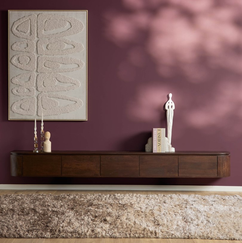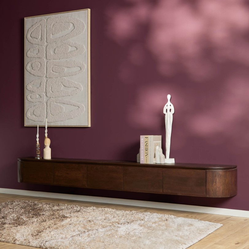 groot zwevend tv meubel donkerbruin mangohout 280 cm