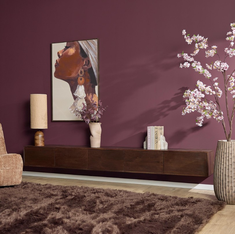 strak zwevend tv meubel donkerbruin mangohout 280 cm