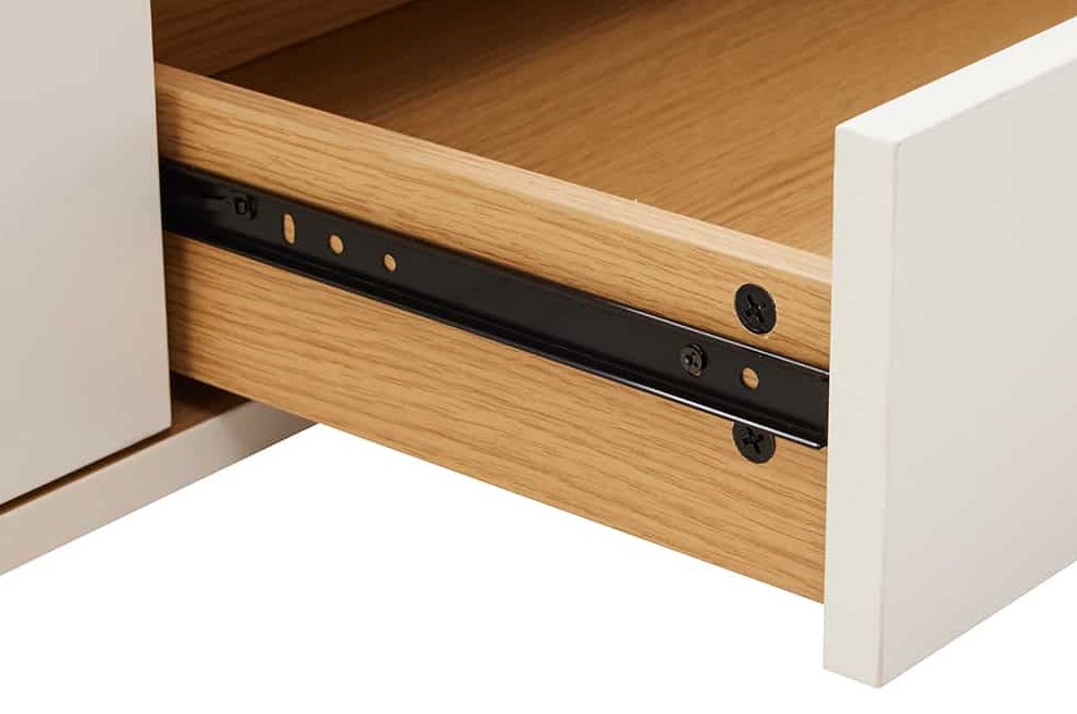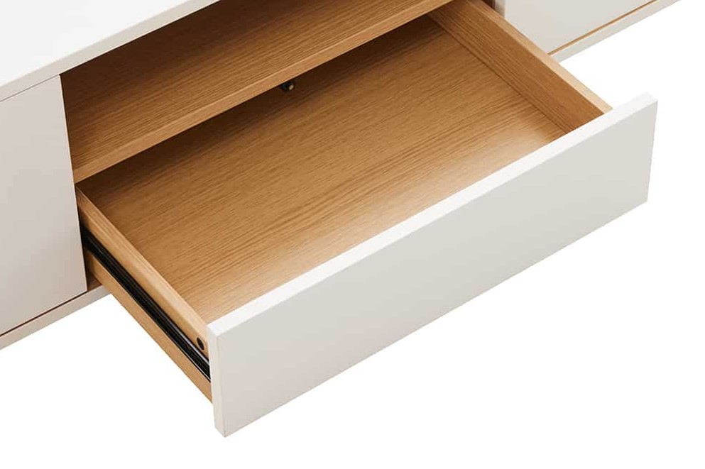 Het open compartiment is ideaal voor apparatuur, consoles of decoratieve objecten, terwijl de lade eronder extra opbergruimte creëert.